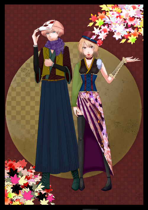 イラスト班はSAIやAdobe Illustrator, Adobe Photoshopなどのソフトを使用して絵を制作しています。 今年のテーマは「和」。 与えられたテーマから、各々が自由な発想で作品を描いています。