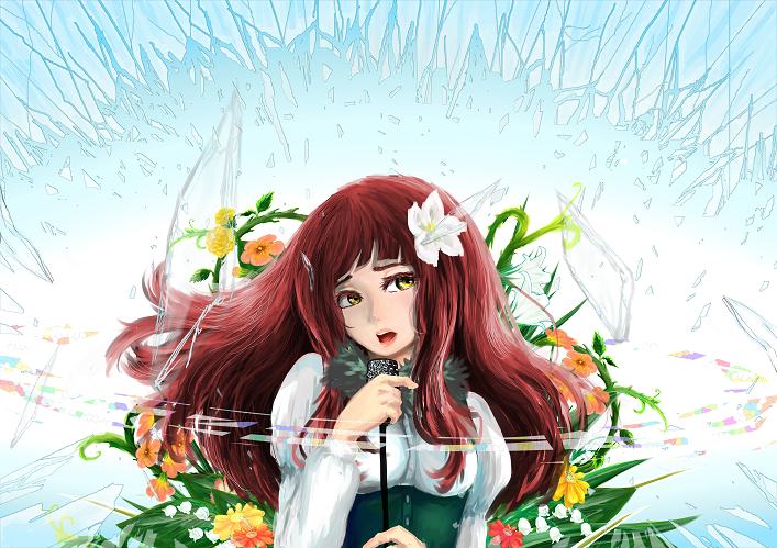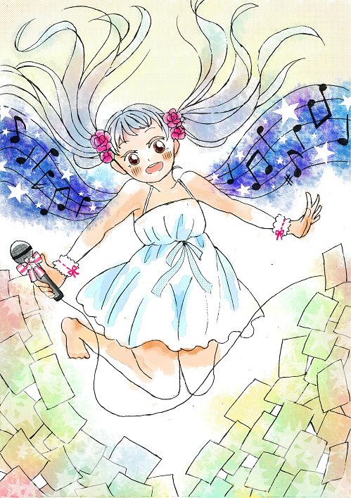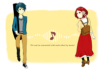 イラスト班はSAIやAdobe Illustrator, Adobe Photoshopなどのソフトを使用して絵を制作しています。 今年のテーマは「音」。 与えられたテーマから、各々が自由な発想で作品を描いています。