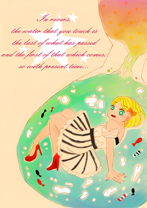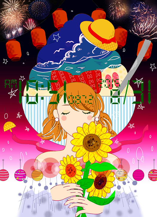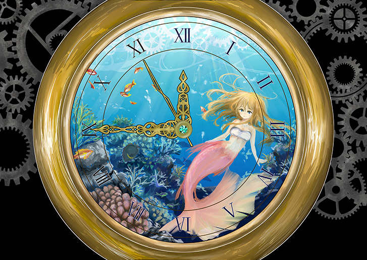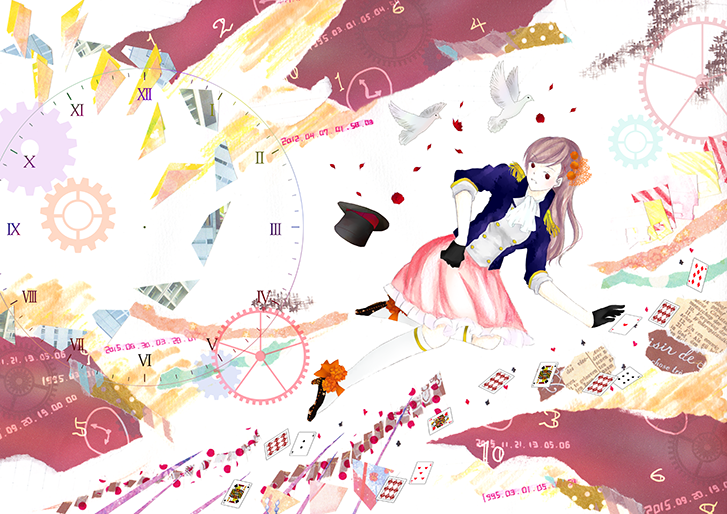 イラスト班はSAIやAdobe Illustrator, Adobe Photoshopなどのソフトを使用して絵を制作しています。 今年のテーマは「時計」。 与えられたテーマから、各々が自由な発想で作品を描いています。
