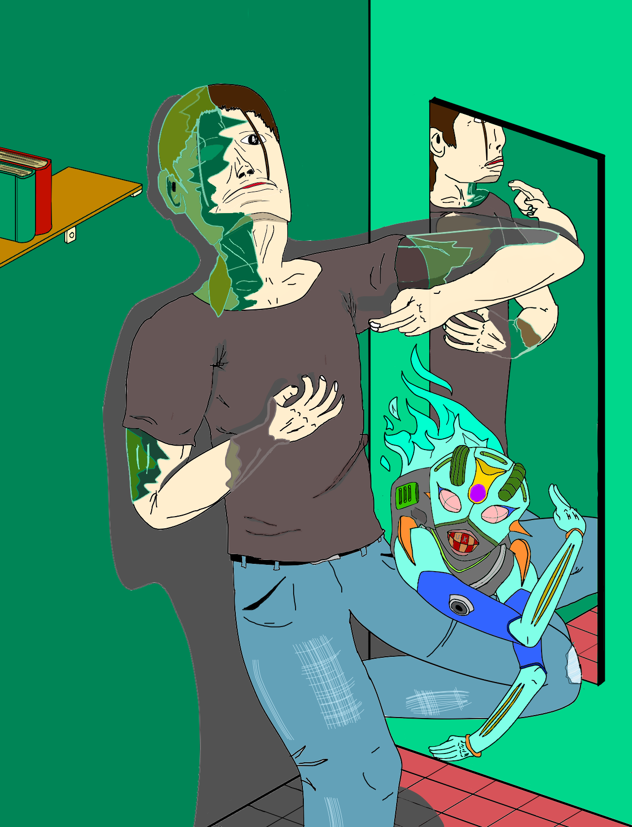 イラスト班はSAIやAdobe Illustrator, Adobe Photoshopなどのソフトを使用して絵を制作しています。 今年のテーマは「透明」。 与えられたテーマから、各々が自由な発想で作品を描いています。