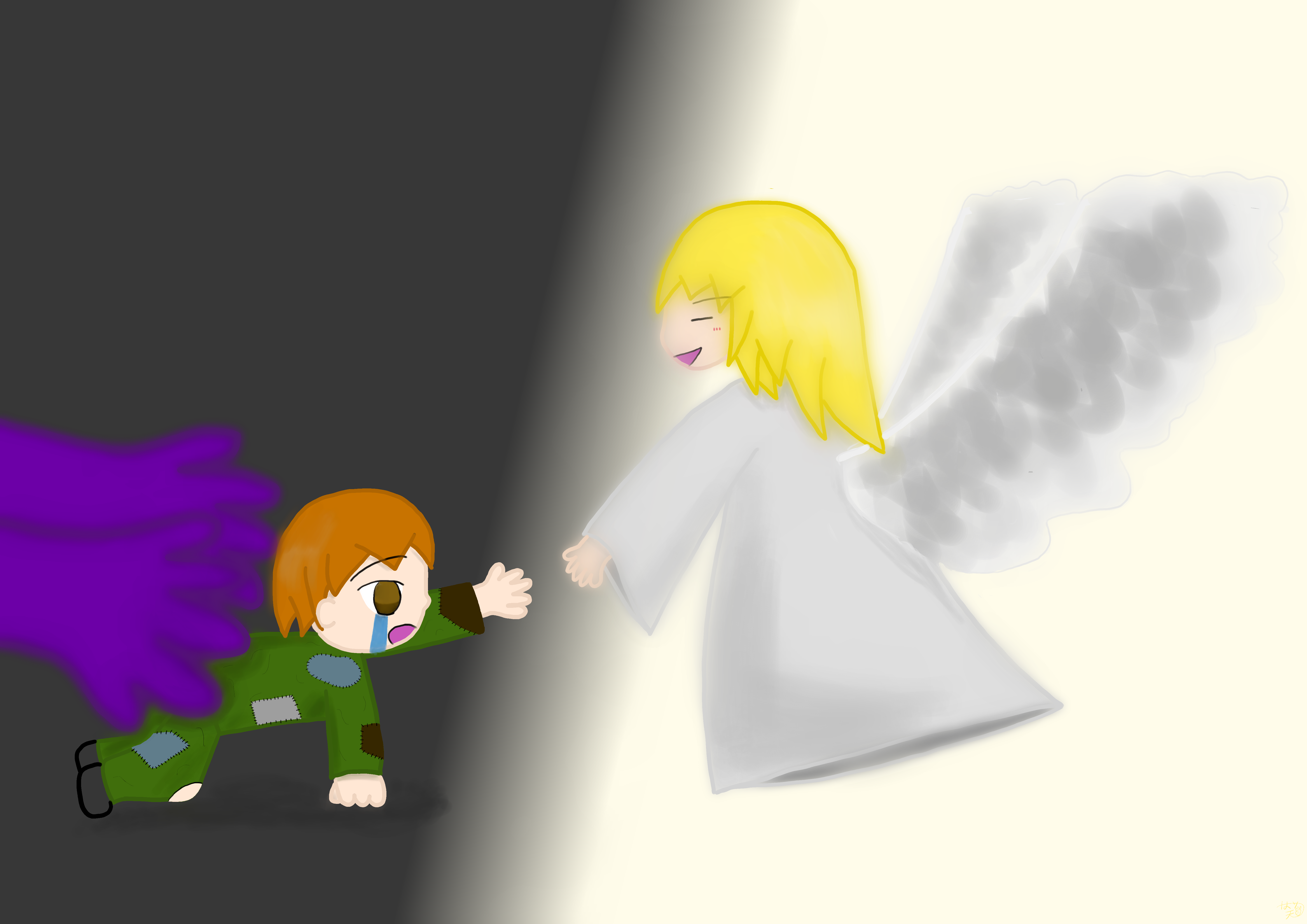 イラスト班はSAIやAdobe Illustrator, Adobe Photoshopなどのソフトを使用して絵を制作しています。 今年のテーマは「光」。 与えられたテーマから、各々が自由な発想で作品を描いています。