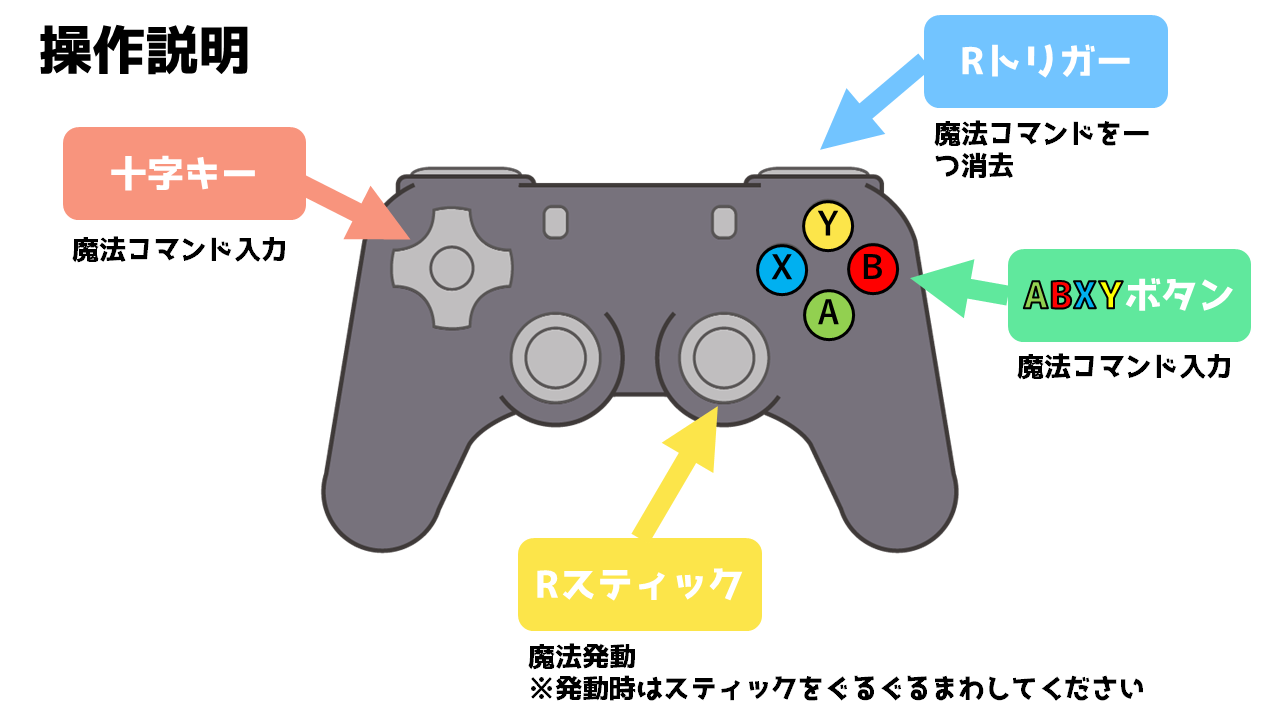 ※このゲームはコントローラを用いて操作を行います。市販のゲームコントローラをお使いください。